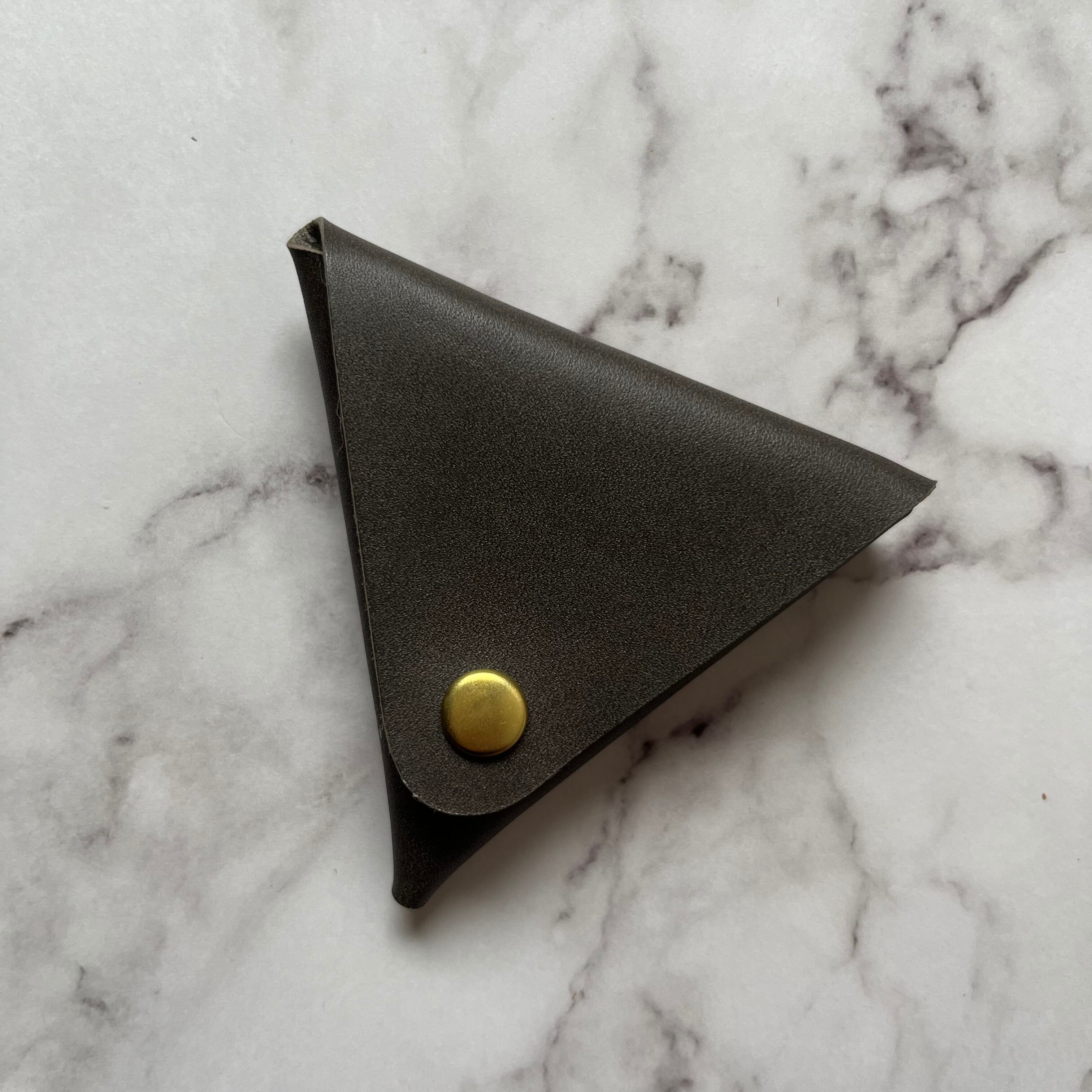1辺約8cmの収まりの良い、三角形コインケース。