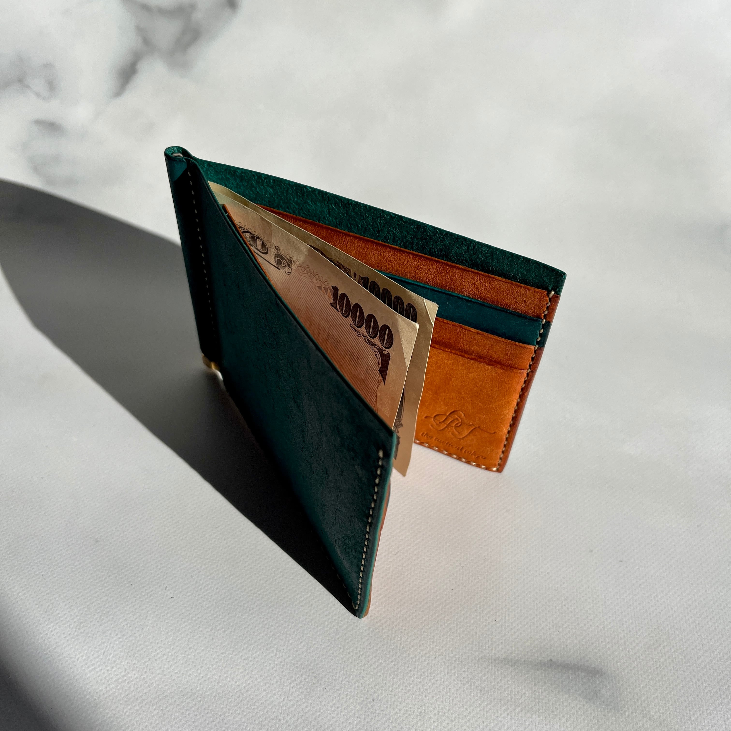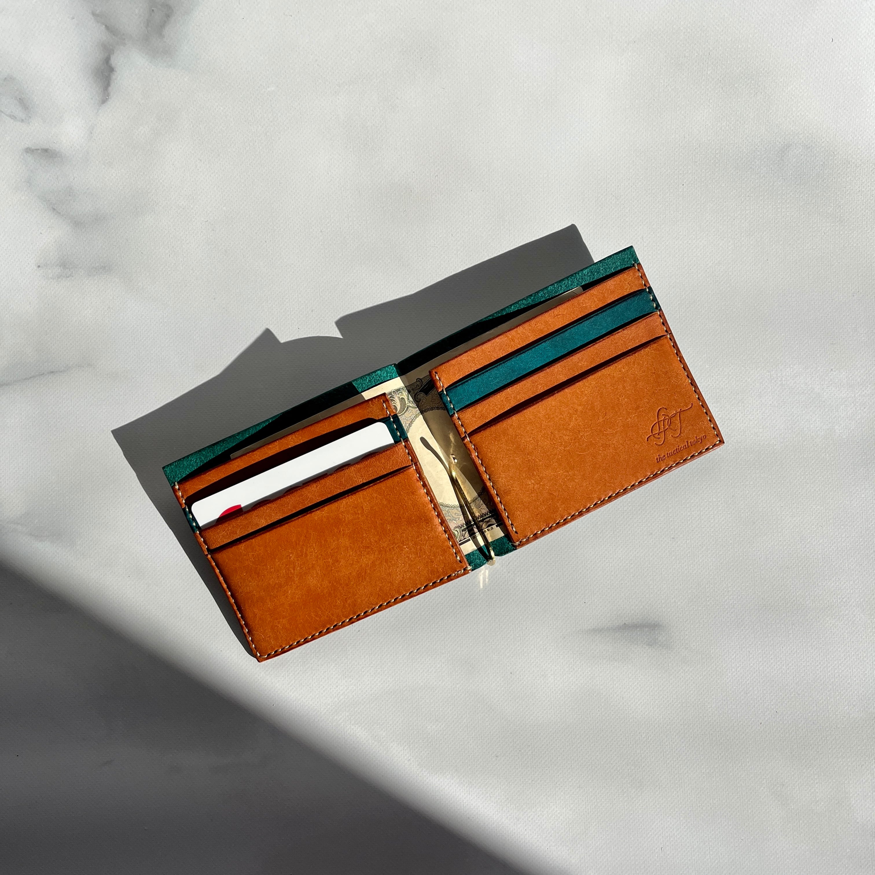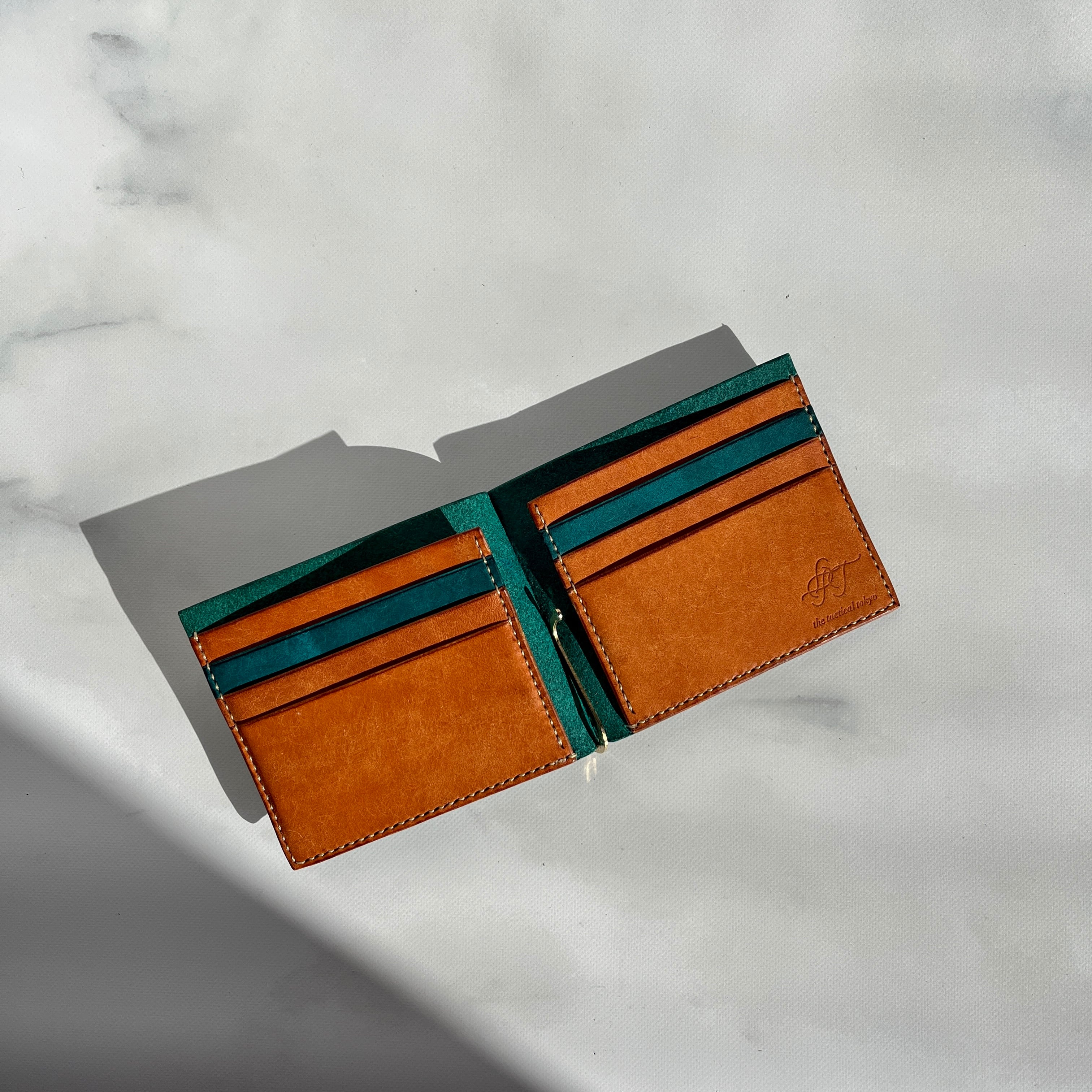 ttt 二つ折りマネークリップ ターコイズ&ブラウン